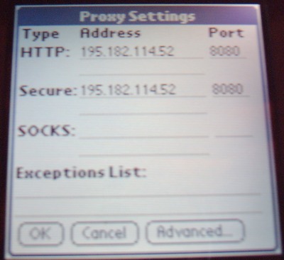 Direkt im AvantGo Connect Menu gibt es einen Button Settings. Dieser führt aber nur zu den Einstellungen des AvantGo-Servers und meinem Account dort...
