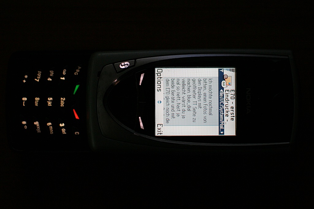 • Ich behalte jetzt das E61 und das E70. Das E70 hat einen Super Joystick und das bessere Display. Das E61 den Vorteil beim Surfen aufgrund des breiteren Displays. Allerdings ist das Telefonieren mit dem E61 aufgrund der Breite eine Qual. Ich bin fast 2 Meter und habe dementsprechende Pranken, aber selbst mir ist das E61 manchaml zu breit, da ist das E70 schon besser.