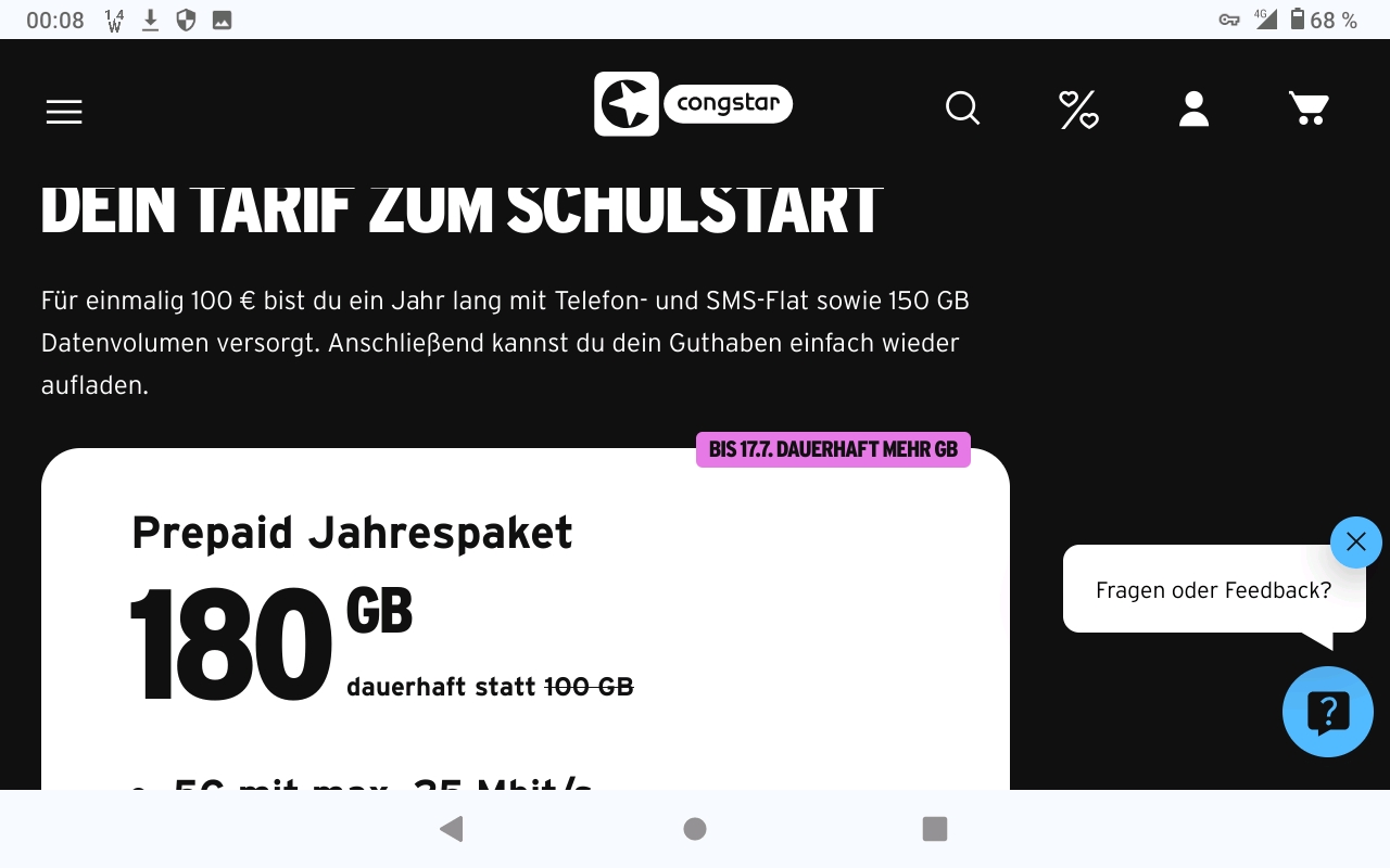 Im Aktionen Thread wurde ich darrauf hingewiesen, das bei Congstar 180GB steht. Das sehe ich jetzt auch. Keine Ahnung warun ich gestern 150 las 🙄