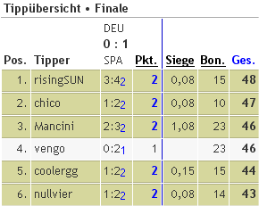 Ein wenig "Arbeit" kommt dabei auf Euch zu, denn ihr solltet alle Begegnungen der EM richtig tippen, dann haben einige von Euch ein neues Handy schon so gut wie sicher. Es kann zwar nicht jeder gewinnen, aber der olympische Gedanke sollte auch zählen.