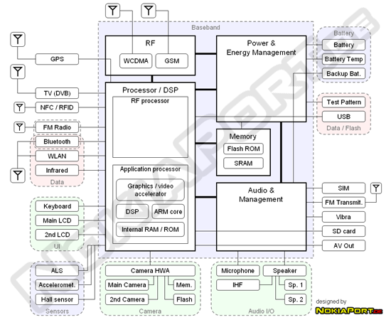 Für alle, die sich dafür interessieren, wie ihr Telefon aufgebaut ist, gibt es hier eine schematische Darstellung der Architektur eines Nokia-Mobiltelefons.