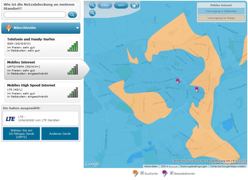 Etwas weiter in Tönisvorst sieht es aber genaus komisch aus. Zwei UMTS oder GSM/UMTS Basisstationen mit so geringer Reichweite.