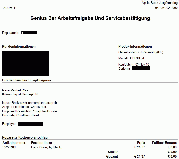 Ich weiß es daher, weil ich letztes mein Backcover im Store (Hamburg Jungfernstieg) habe tauschen lassen, da die Kameralinse zerkratzt war.