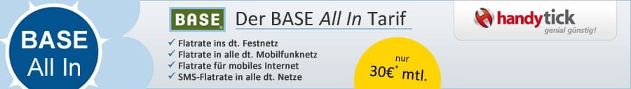 Base startet durch mit dem neuen All In Tarif. Die Allnet Flatrate für alle Vieltelefonierer schon ab 30€ monatlich!