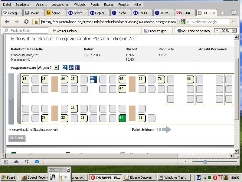 Wenn du einfach nur eine Platzreservierung zum Schein ausführst, ohne angemeldet zu sein kommst du im dritten Schritt bei "Ticket & Optionen" zu "Details zu Ihrer Sitzplatzreservierung". Dort kannst du dir alle Sitzplätze anzeigen lassen und deren Status. Dann kannst du entweder reservieren oder eben abbrechen.