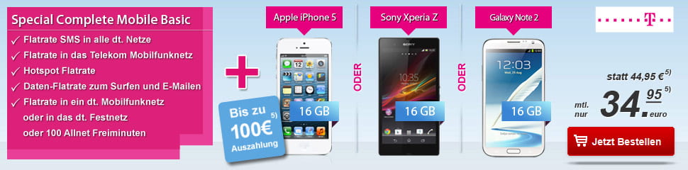 zum Start in diesem Monat haben wir euch ein TOP Angebot aus dem original Telekom Netz zusammengestellt - der beliebte Special Complete Mobil Basic Tarif mit folgenden Geräten im Angebot: