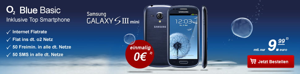 Zu diesem Tarif erhaltet ihr das Samsung Galaxy S3 Mini i8190, Netzbetreiber-Ware zu 0€ dazu!!