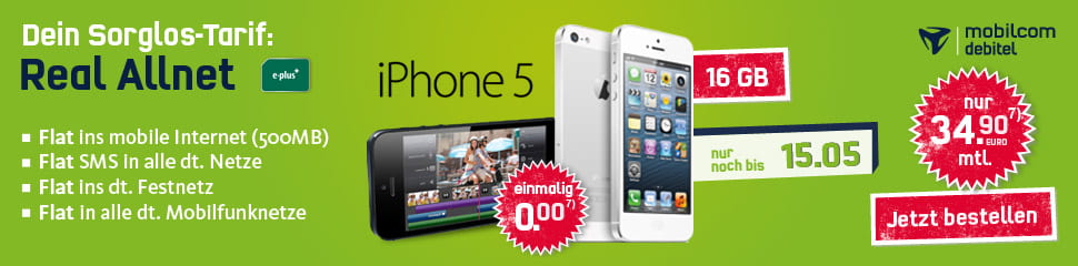 Zu diesem TOP Tarif erhaltet ihr das Apple iPhone 5 16GB EU-Ware zu 0€ dazu!!