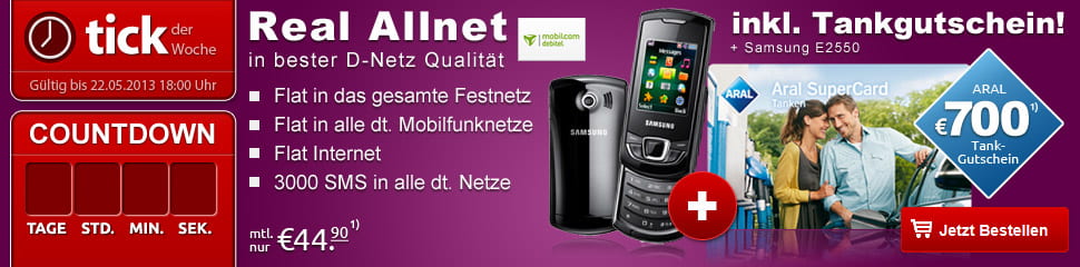 Zu diesem Tarif erhaltet Ihr das Samsung E2550 und einen 700 EURO Aral-Tankgutschein! :top: