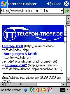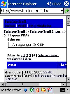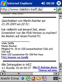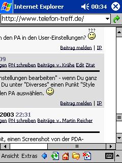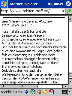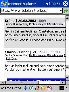 Da aber leider meine Screenshots nach wie vor nicht angezeigt werden, habe ich mich dann doch mal an meinen Webspace gemacht und setze sie hier selbst noch mal rein. Mit PPC2003 sieht es schon wesentlich besser aus, (s. mein Posting auf der nächsten Seite) oder auch mit einem PPCBrowser wie NetFront 3.0.