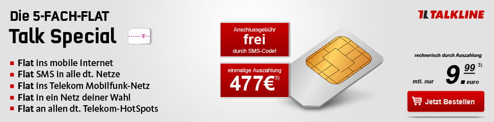 anbei ein TOP Angbeot aus dem Telekom Netz aus dem Hause Talkline im beliebten Talk Special Tarif!