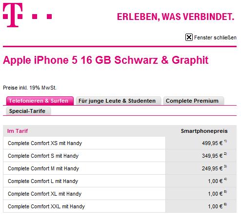 Habe mir jetzt sie Subventionen des Complete Comfort XS / S / M am Beispiel Apple iPhone 5 16GB angeschaut: