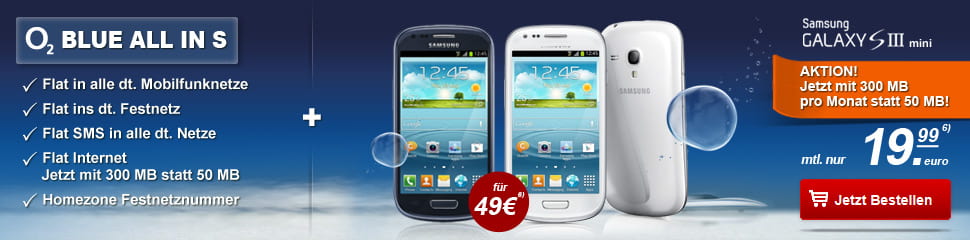 Zu diesem Tarif gibt es das Samsung i8190 Galaxy S3 Mini, Netzbetreiber-Ware zu einmalig 49€ Zuzahlung!