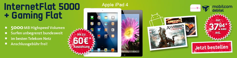 MD Internetflat mit 5000MB im besten Telekom Netz! inklulsive iPad 4 und 60€ BAR!*