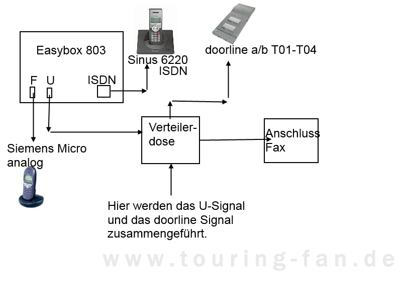 Raus Telefonieren kann ich Problemlos mit allen Telefonen auch wenn die Doorline a/b T01-T04 angeschlossen ist.