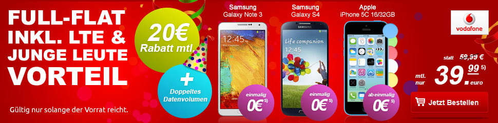 Tarifpromotion via Srvice Hotline 12722 oder über Mein Vodafone App wählbar zwischen:
