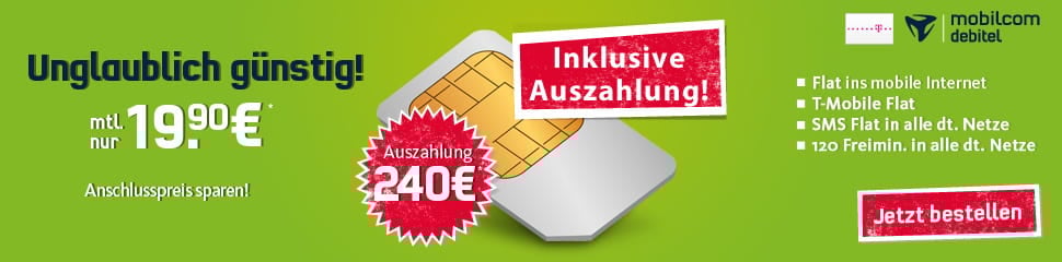 auch den Top Tarif aus dem Telekom Netz von Mobilcom-Debitel habe wir für euch soweit es geht rabattiert! ![]()