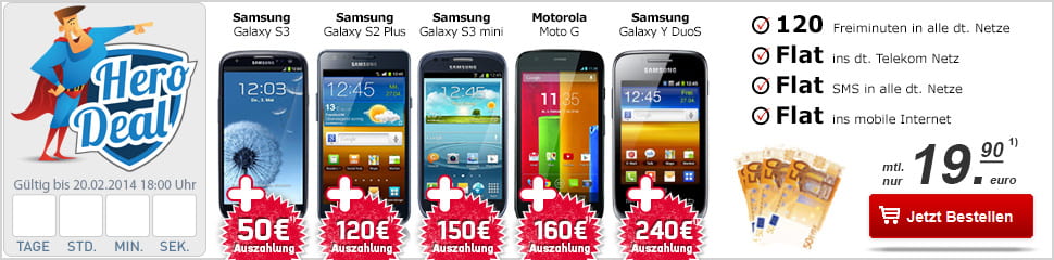 Hero Deal Flat Smart D1 MD|3-fach Flat + 120Min|19,90€ mtl.|Gerät mit bis zu 240€BAR!