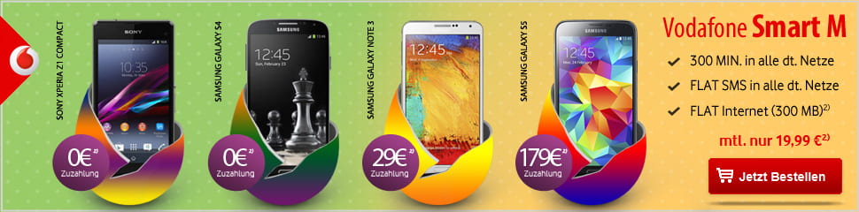 Vodafone Smart M nur 19,99€ mtl.| 300Min-SMS&Datenflat| S4/Z1 Com. etc. ab 0€!*