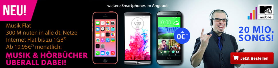 MTV Mobile Flat bis zu 1GB Datenvolumen inkl. Musik Flat - Apple/Samsung etc. ab 0€!*