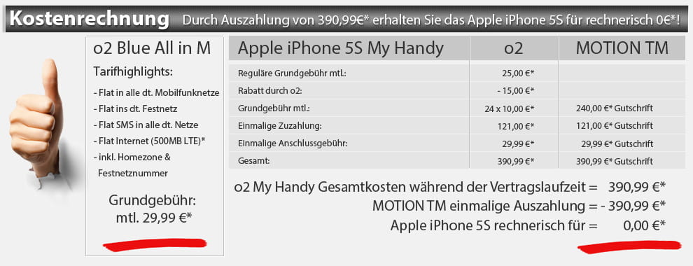 Anbei die Kostenaufstellung für das Apple iPhone 5S My Handy