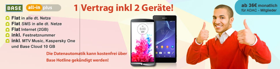 Top Deal mit 2 Smartphones inkl. Base Allnet Flat ab 36€ mtl. inklusive ADAC Vorteil! ![]()