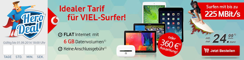 anbei unser nächster Hero Deal aus dem original Vodafone Netz im neuen MobileInternet Flat Tarif für Dauersurfer! ![]()