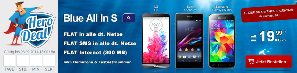 Hero Deal! O2 Allnet Flat mit 300MB nur 19,99€ mtl. mit Smartphone schon ab 0€!*