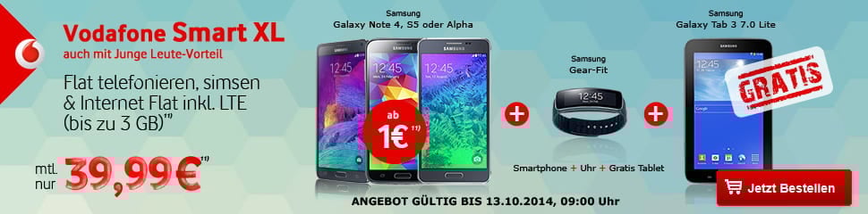 Folgende Smartphones inkl. Samsung Galaxy Tab 3 7.0 WiFi & Samsung Galaxy Gear Fit stehen im Angebot: