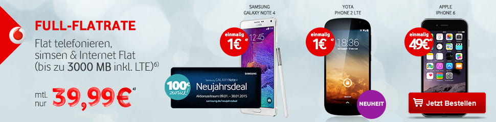 Samsung Galaxy Note 4 Aktion*³ zu 1€