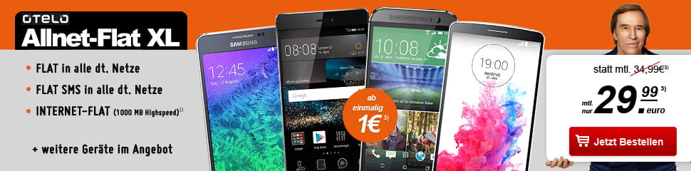 Otelo Allnet mit 1GB Daten bis zu 21,6 Mbit/s nur 29,99€ mtl.| S5/G3 etc. ab 1€!*