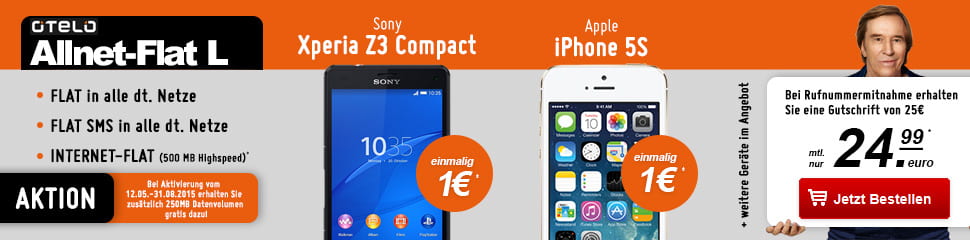 Otelo Fullflat mit 750MB bis zu 21,6 Mbit | 24,99€ mtl| iPhone 5S (B-Ware) etc ab 1€*