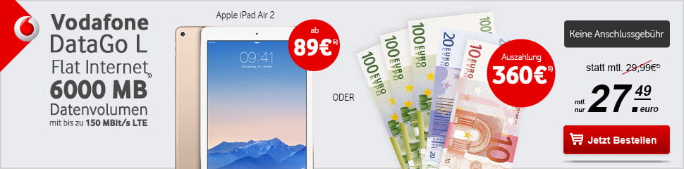 Vodafone DataGo L mit 6GB Volumen & bis zu 150Mbit LTE| Tab S 10.5 LTE etc. ab 1€!*