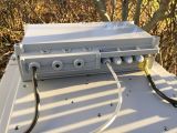 Ich habe keine Ahnung von dieser Technik, die NSN-Boxen wurden von 5 auf 3 reduziert, dafür ist dieser Kasten auf der obersten dazugekommen, was für mich nach einem Eigenbau aussieht. Die Beschriftung ist auch Telefónica-untypisch mit diesen gelben Schildern. An einer anderen, neuen Telefónica 262-07-BTS hier in der Region, die noch nicht onair ist, verwendet man diese neuen schwarzen Schilder: