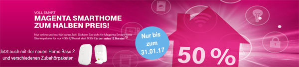 Bis zum 31.01.2017 kostet Telekom Smart Home nur 4,95 € mtl. in den ersten 12 Monaten, danach 9,95 €. Ab dem 25. Monat dann 9,95 € mtl.