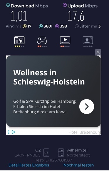 Tja auch nicht überall. Daheim habe ich Band 8 und Band 20 (mittlerweile), aber Datendurchsatz weiterhin 1stellig. Im Flur habe ich nur GSM und das im 1.OG eines Stadtteils, der nicht dicht bebaut ist.