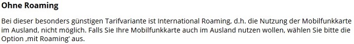 - "Die Nutzung der Mobilfunkkarte im Ausland ist nicht möglich."