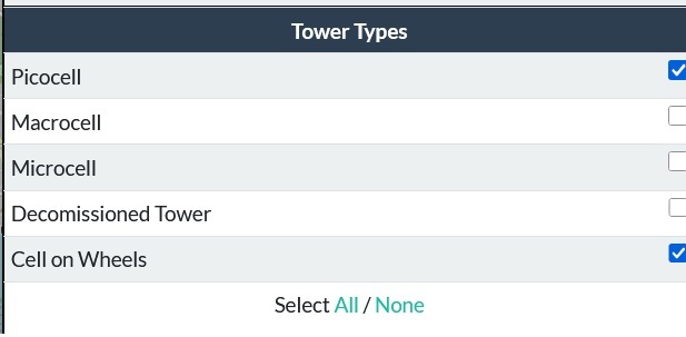 Man kann jetzt nach Tower Types filtern: Macro, Mikro, Pico und decomissioned. "Show Low Accuracy" ist jetzt eine Extra-Auswahl-Option.