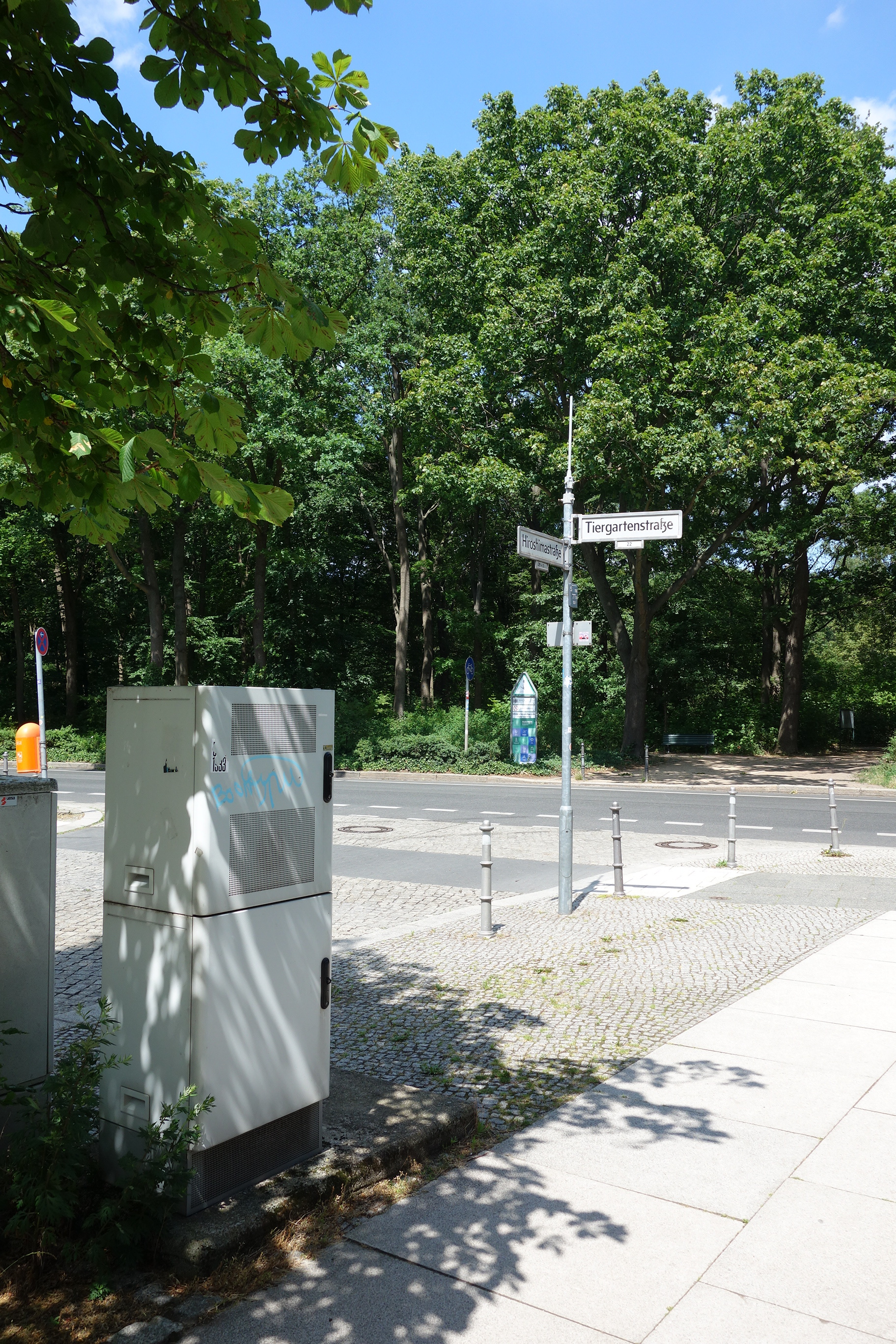 Die Telefonzelle ist inzwischen abgebaut und der Technikschrank (Lüftungslöcher) hat sich mittlweile auch verändert.