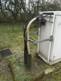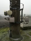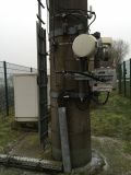 Wenn kein Aufkleber von E-Plus an der Tür wäre, hätte ich nicht erkennen können, wem dieser Standort gehört. Rundherum empfange ich andere, mir bekannte Sender. Es ist also keine BTS, es hängen keine Sektorantennen am Mast, aber auch kein Repeater. Die Ericsson-Hardware am Fuße des Masts surrt aber und ist in Betrieb,