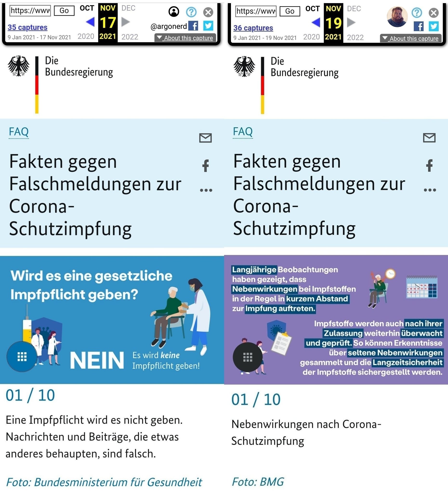 • Im Sommer hat jeder dazu etwas sagende Politiker die Impfpflicht kategorisch ausgeschlossen, nun taucht diese Aussage auf der Website des BMG nicht mehr auf.