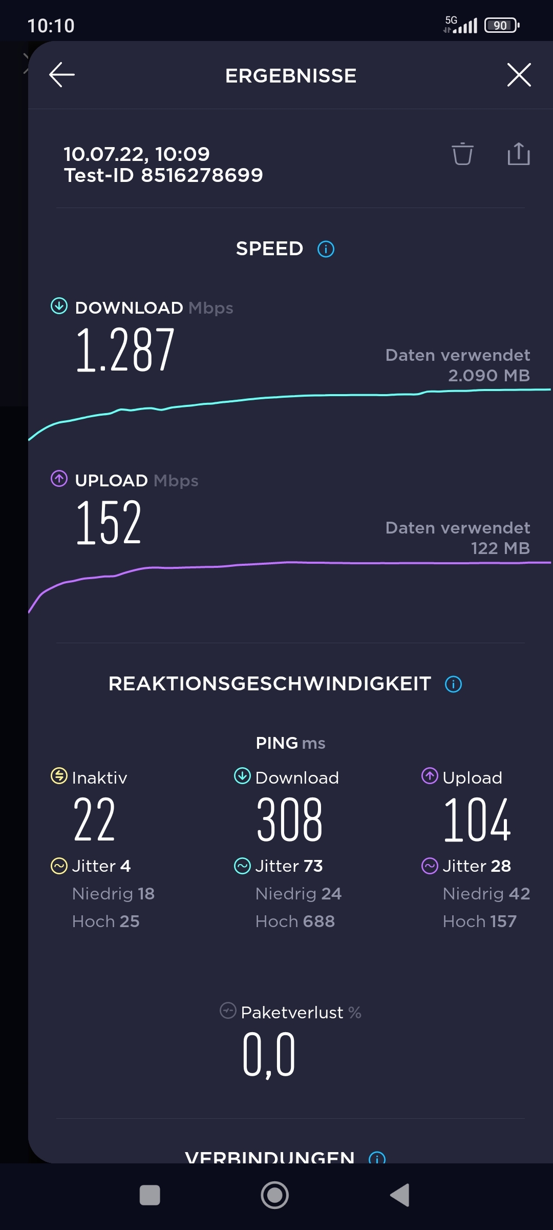 Speedtest im übrigen 1074/ 87 Mbit ( braucht kein Mensch am Handy)