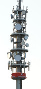Ziemlich in der Mitte Einsam das NEC Panel, eine ebene darunter wohl die Multibands für LTE, o2 und Vodafone sind mit am Mast, wer davon ganz oben und wer unten weiss ich nicht.