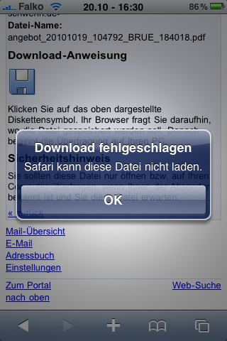 Die genaue Fehlermeldung lautet: "Safari konnte die Seite nicht öffnen, da der Server nicht mehr antwortet."