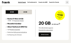 Man startet bei fraenk mit 25 GB für 10 Euro pro Monat, nicht mit 20 GB.
