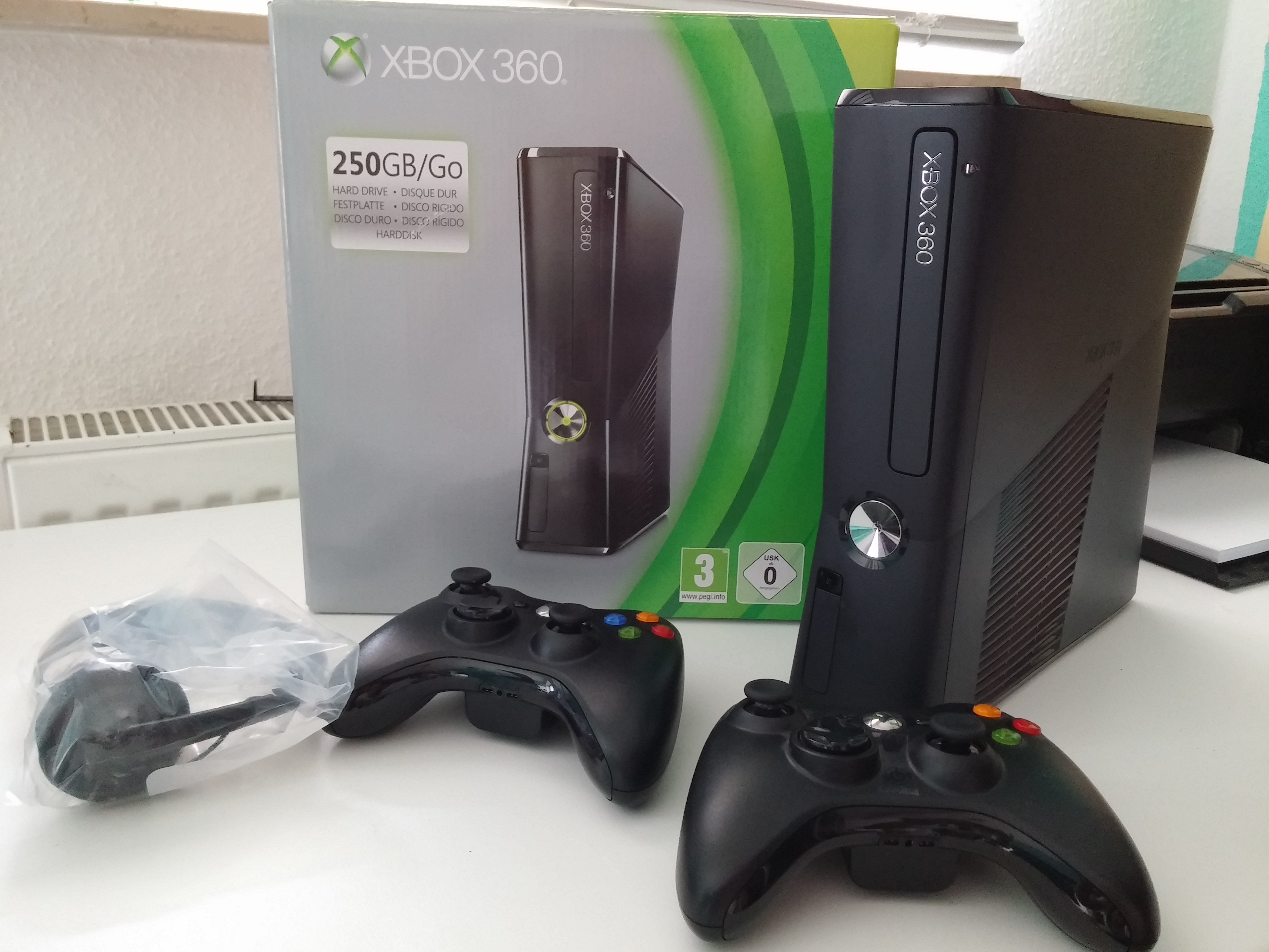 Es ist die matte Slimvariante mit verbauter 250 GB Festplatte und durchgeführtem RGH (inkl. aller Updates bis heute). Details per PN.