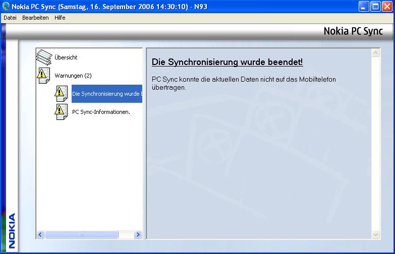 Ich habe übrigens auch schon versucht die Verbindung über Bluetooth herzustellen, exakt das selbe Problem, es liegt also nicht an der Verbindung, sondern entweder an dem N93 oder der PC Suite.