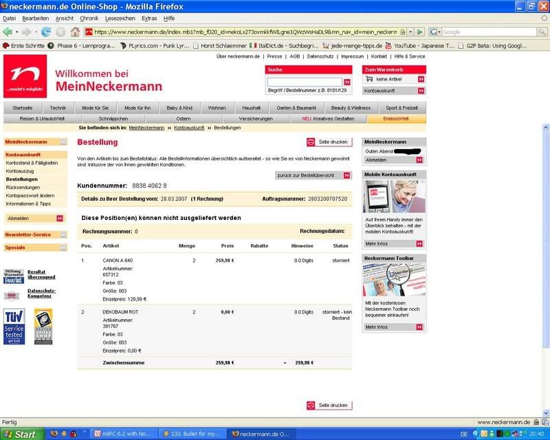 So, habe gerade mal einfach so mein Kundenkonto angesehen und was soll ich sagen: Die Bestellung wurde storniert. Dahinter steht noch "Kein Bestand"...